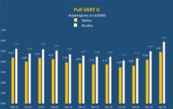 Dem »Pull VARY G*« liegt der Central European Gas Hub (CEGH) zugrunde. Der Arbeitspreis wird mit der Formel (Börsenpreis aktuell in €/MWh + 2,80)/10 berechnet. Der Börsenpreis ergibt sich aus dem Mittelwert aller CEGHIX Preise (CEGH Gas Index) vom 21. des Vorvormonats bis zum 20. des Vormonats. Die Preise können jederzeit unter www.cegh.at/en/exchange-market/market-data/ abgerufen werden.